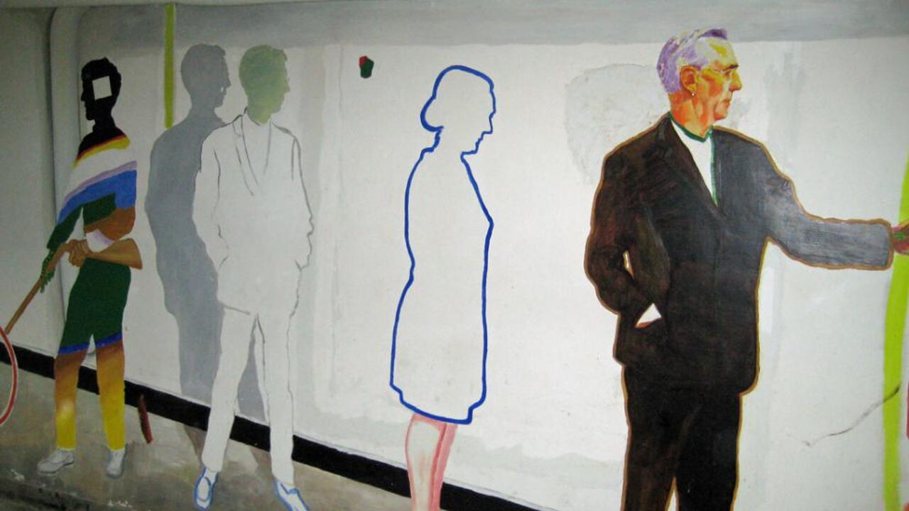 Raveel, 1976: muurschildering in de Brussels metro station Mérode, België